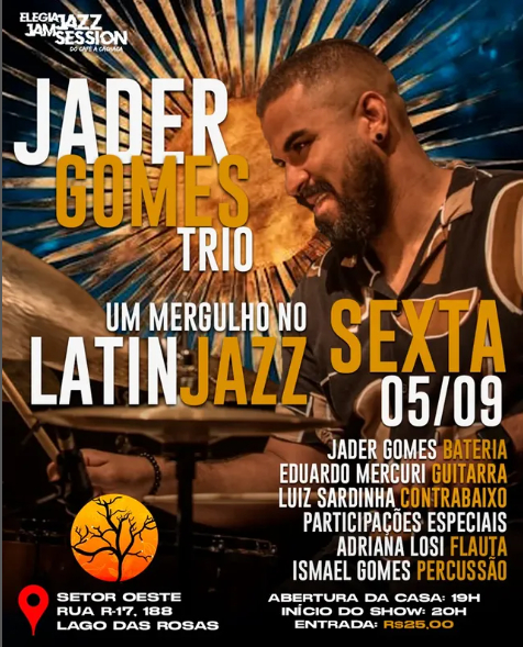 🥁 Jader Gomes é referência absoluta para os bateristas de Goiânia, escolhido para dividir palco com gigantes como Toninho Horta e Derico.