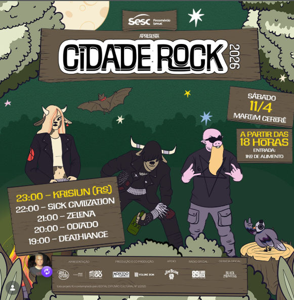 Sim, é isso mesmo: Krisiun é a grande atração da próxima edição do Cidade Rock 2026, em uma noite brutal dedicada ao metal e aos sons pesados em Goiânia.