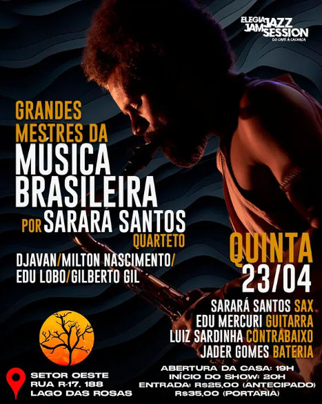 No palco, Sarará Santos, Edu Mercuri, Luiz Sardinha e Jader Gomes se reúnem para um show que revisita grandes nomes da música brasileira sob uma abordagem jazzística, cheia de liberdade e personalidade.